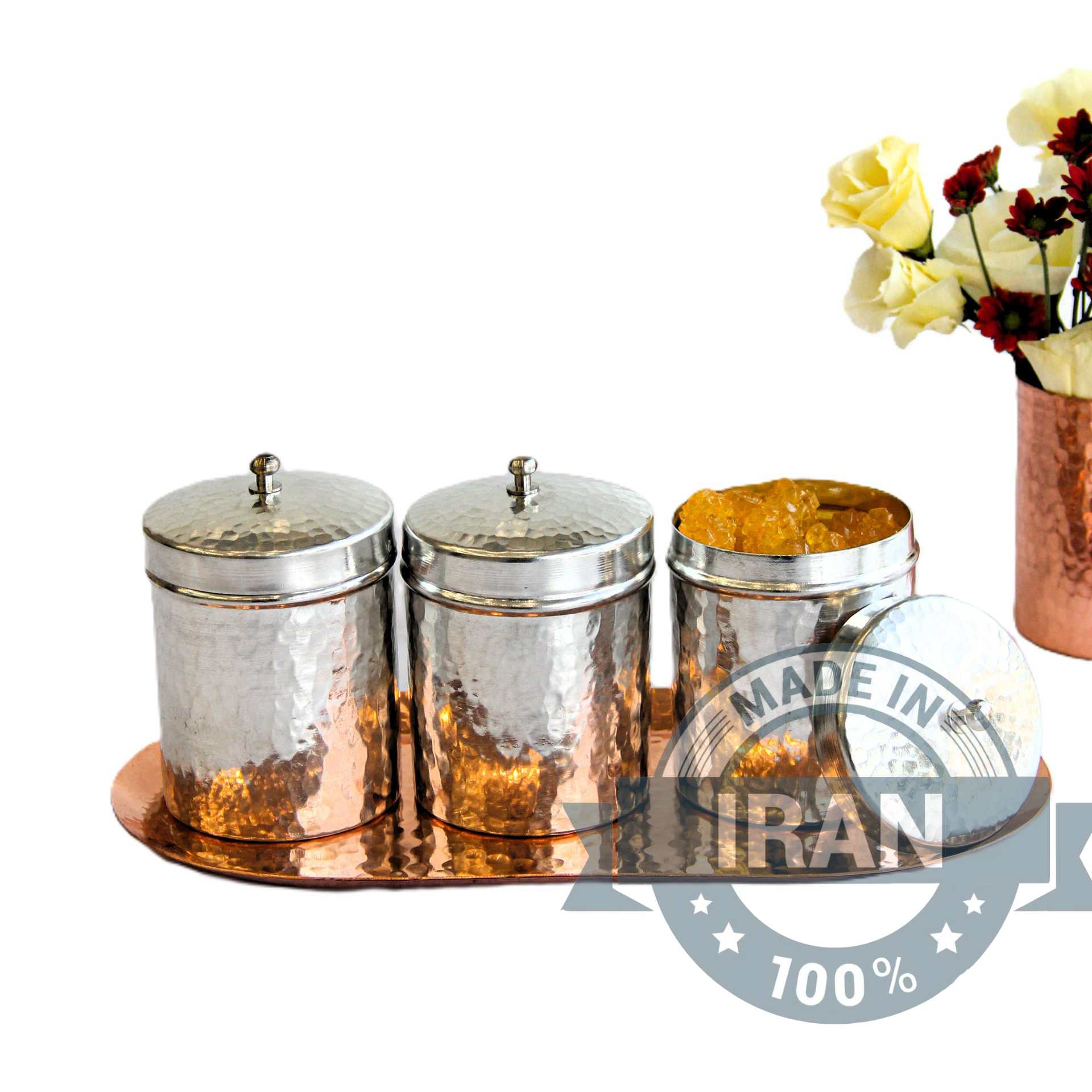 تُصنع علب النحاس الرائعة لدينا بدقة يدويًا بواسطة حرفيين مهرة في يزد، إيران. مصنوعة من أجود صفائح النحاس النقي ومبطنّة بالقصدير النقي، هذه القطع الخالدة جميلة وعملية على حدٍ سواء. الشكل المستدير الناعم والنهائية المصقولة تجعلها إضافة مذهلة لأي مطبخ.